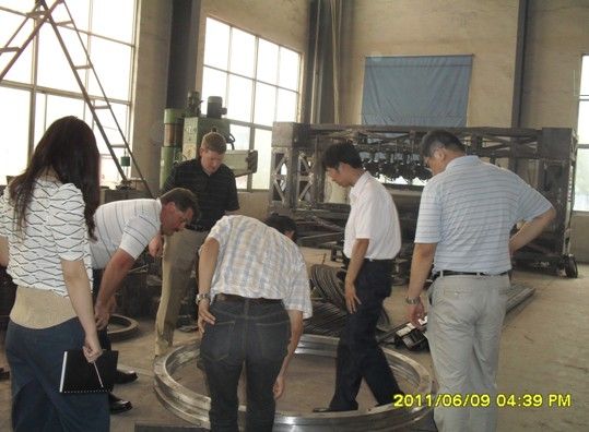 一些海外企業(yè)對萬泰烘干機械的品牌、質(zhì)量十分信賴,通過網(wǎng)絡(luò)平臺就完成了交易過程,也有一些客戶想與萬泰形成長期的友好合作,不遠萬里來到萬泰的生產(chǎn)基地進行實地的考察。2011年6月9日,美國客戶一行5人來我公司考察,進一步洽談石英砂烘干系統(tǒng)工程。